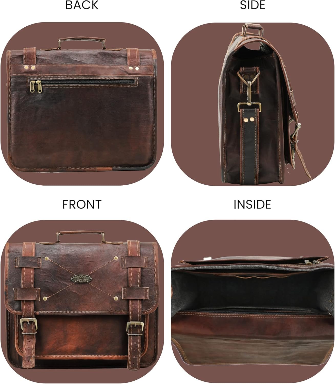Material: High-quality brown vintage leather, canvas lining